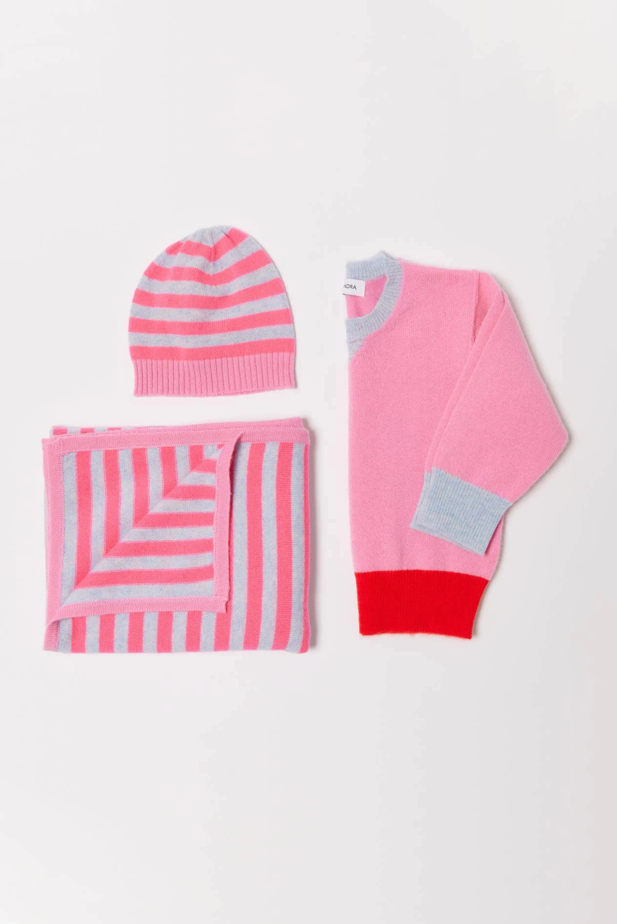 Baby Cashmere Beanie In Fairy, Pink Blue Stripe