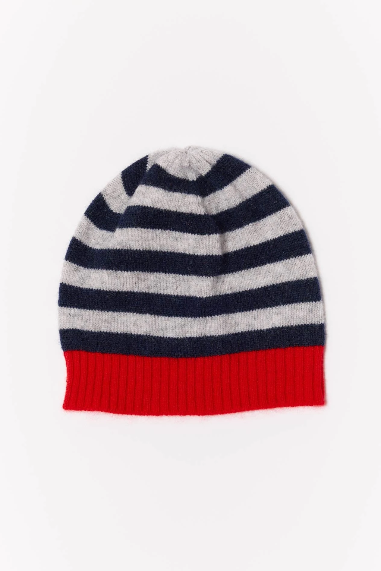 Baby Cashmere Beanie In Rouge, Navy Grey Stripe