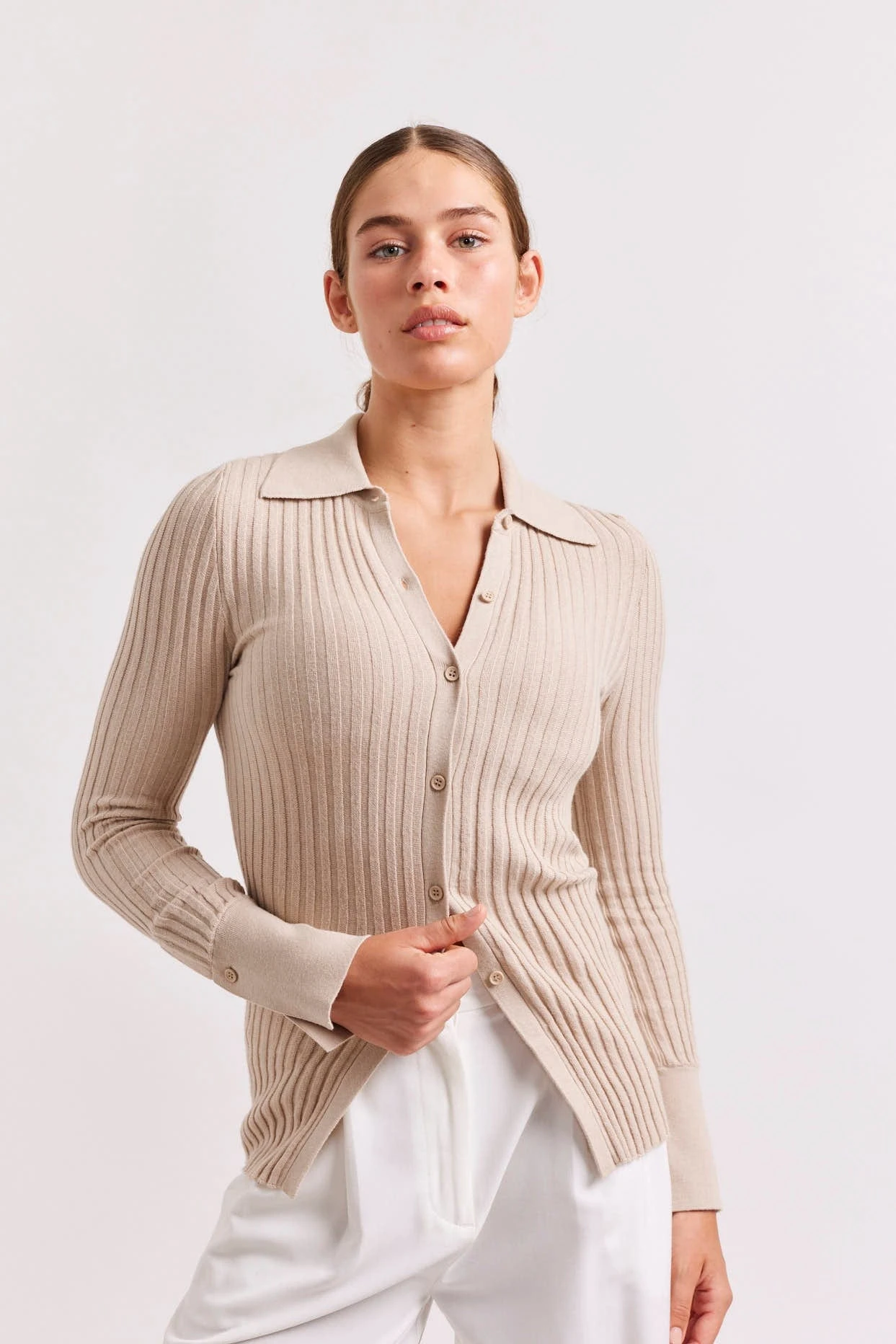 - Collared button down ribbed top