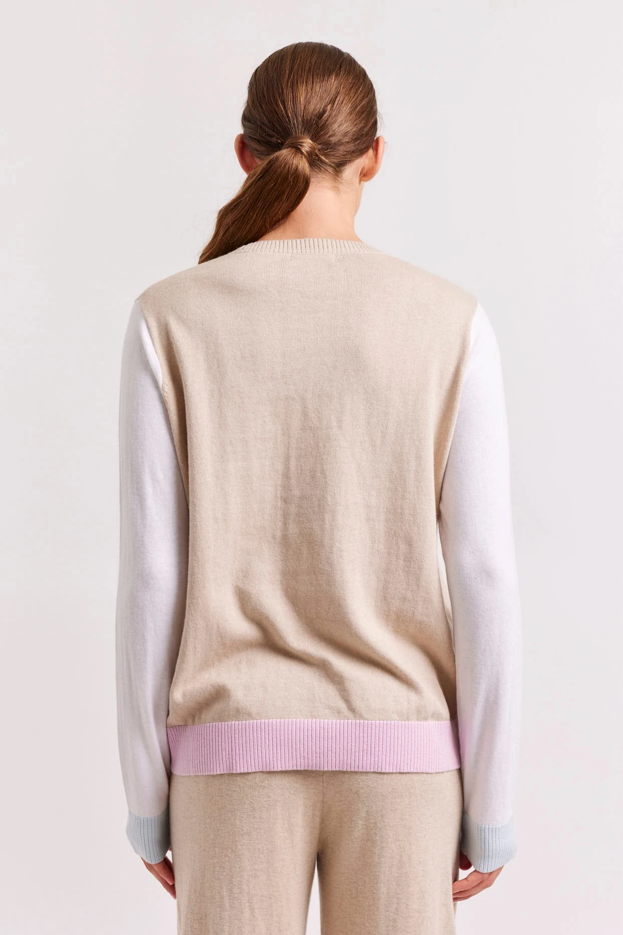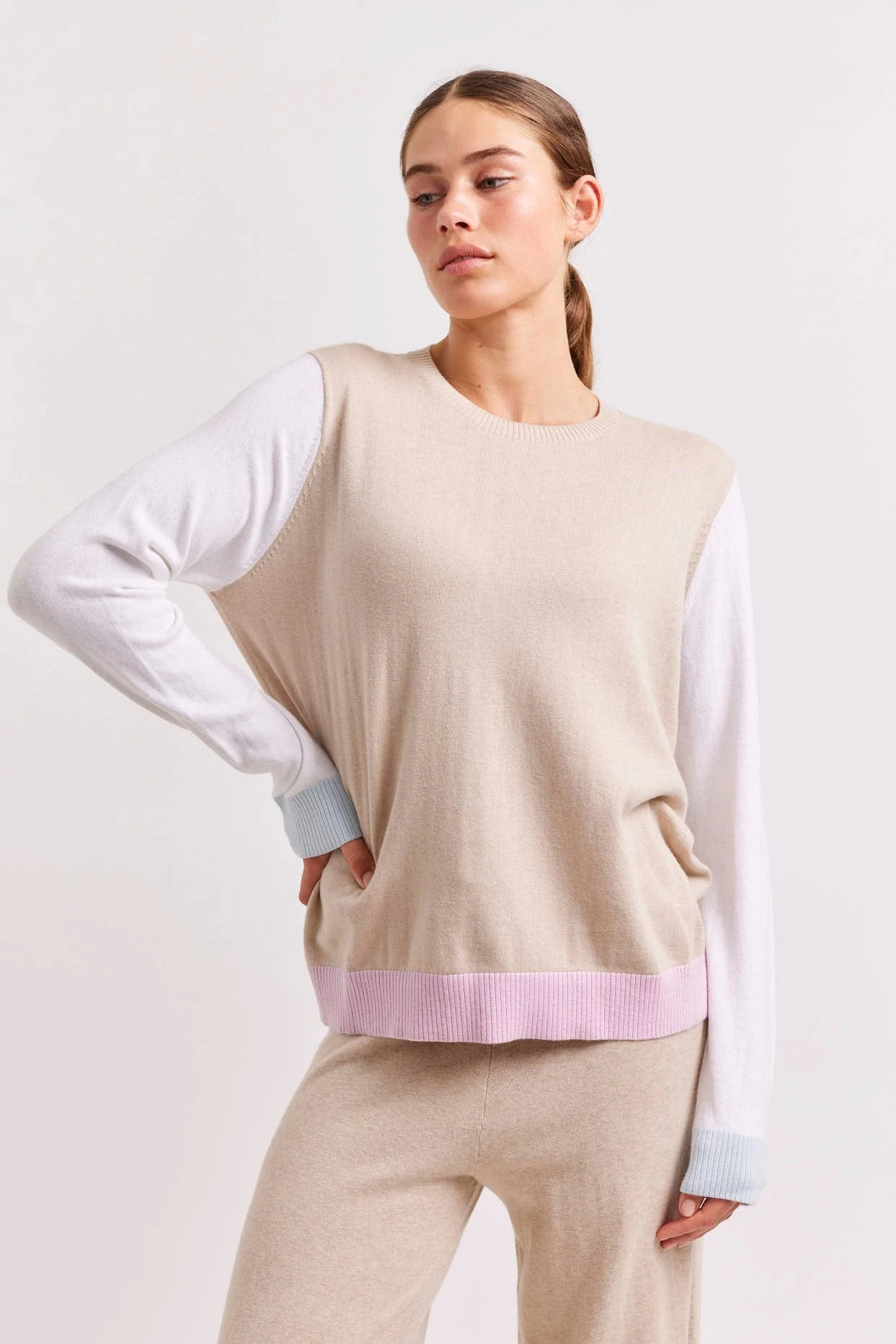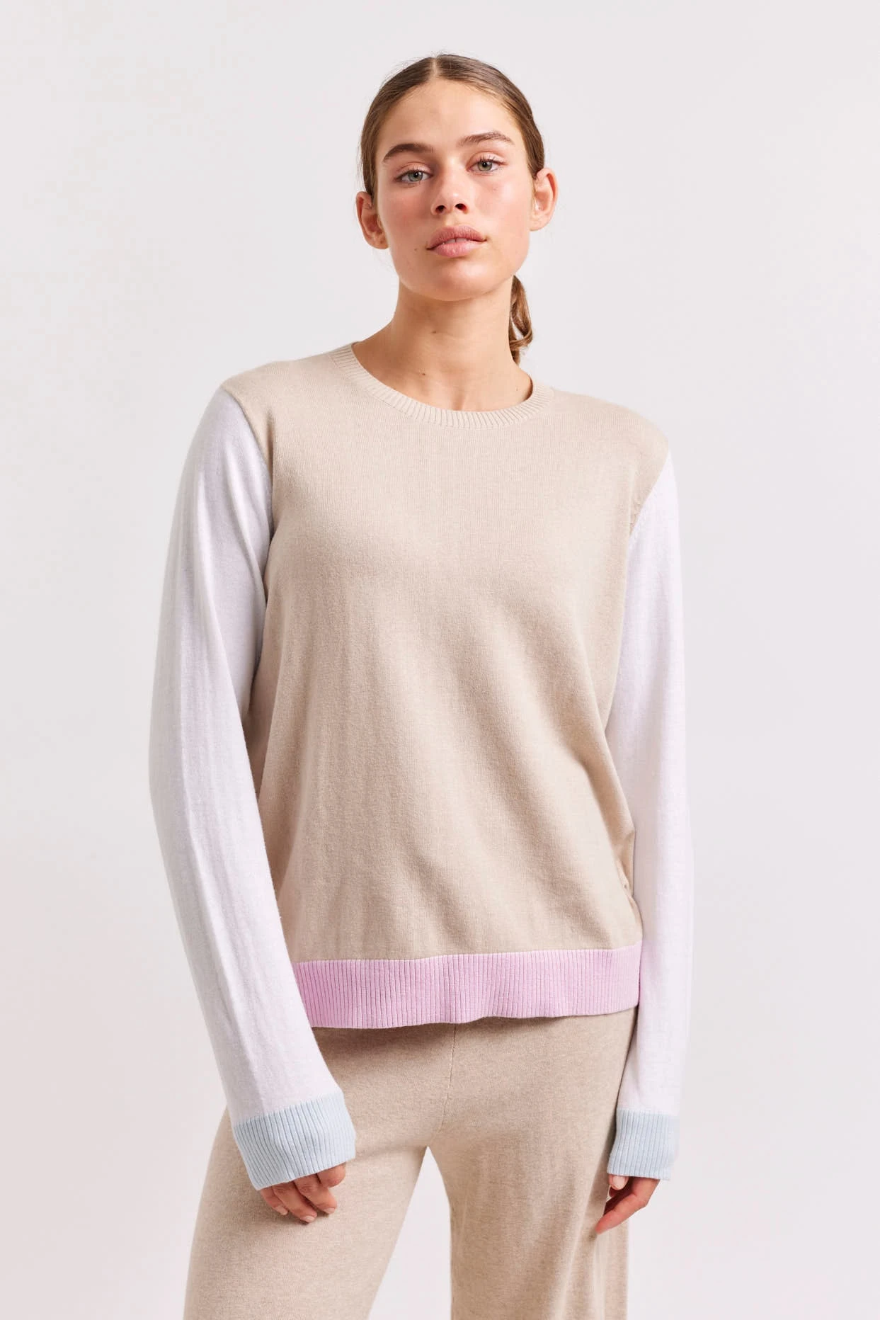 - Laser white sleeves, frost blue cuff & slumber pink hem