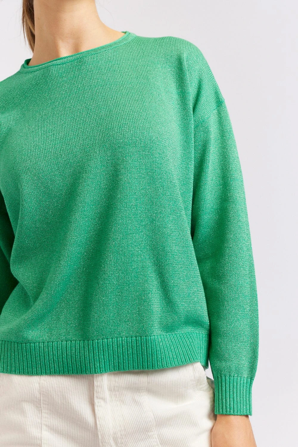 - Emerald green with silver lurex yarn