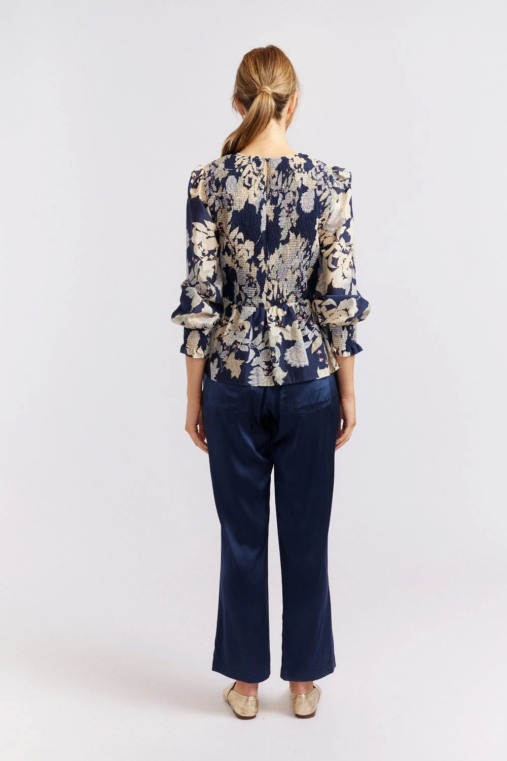 - Voluminous sleeve with shirred cuffs