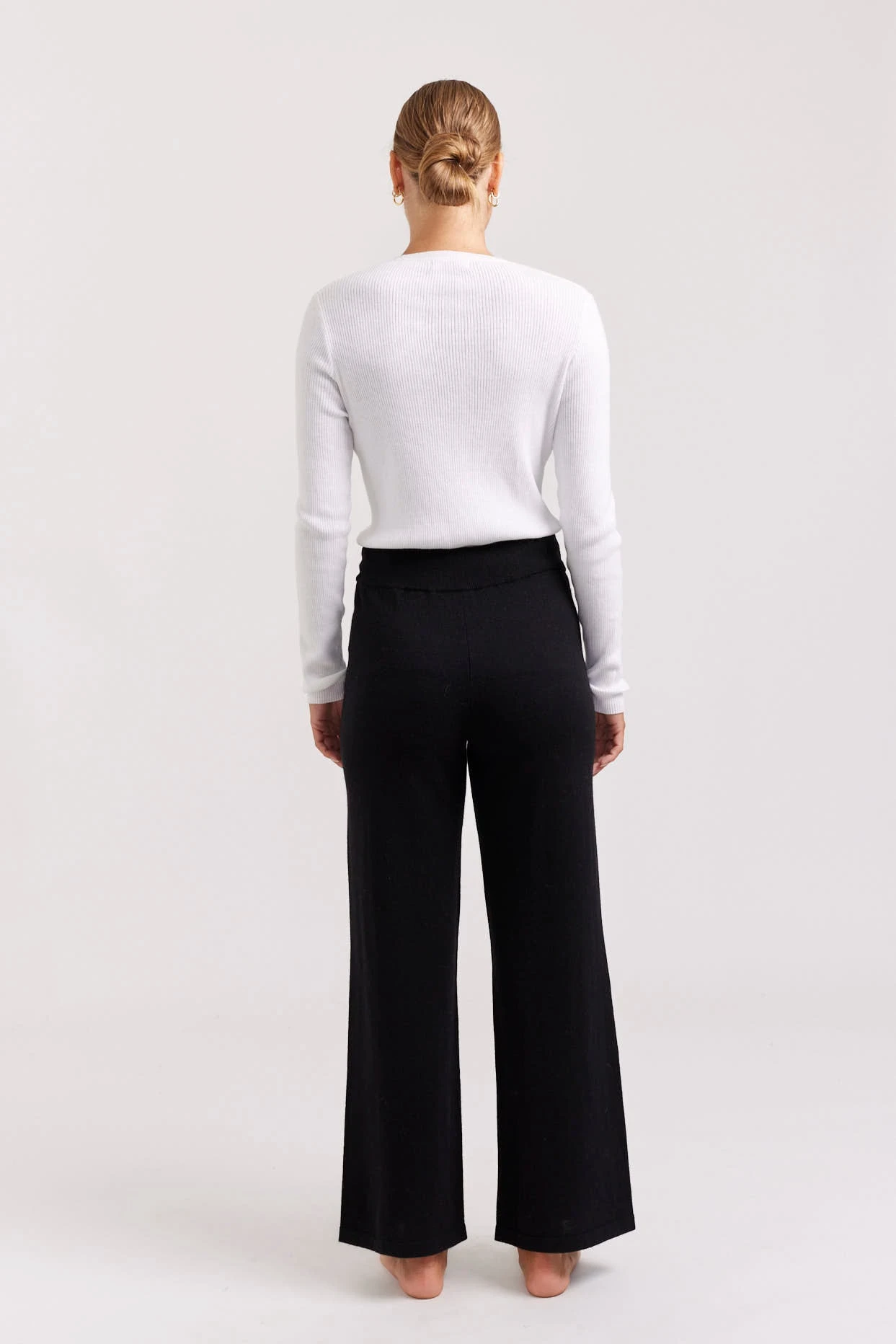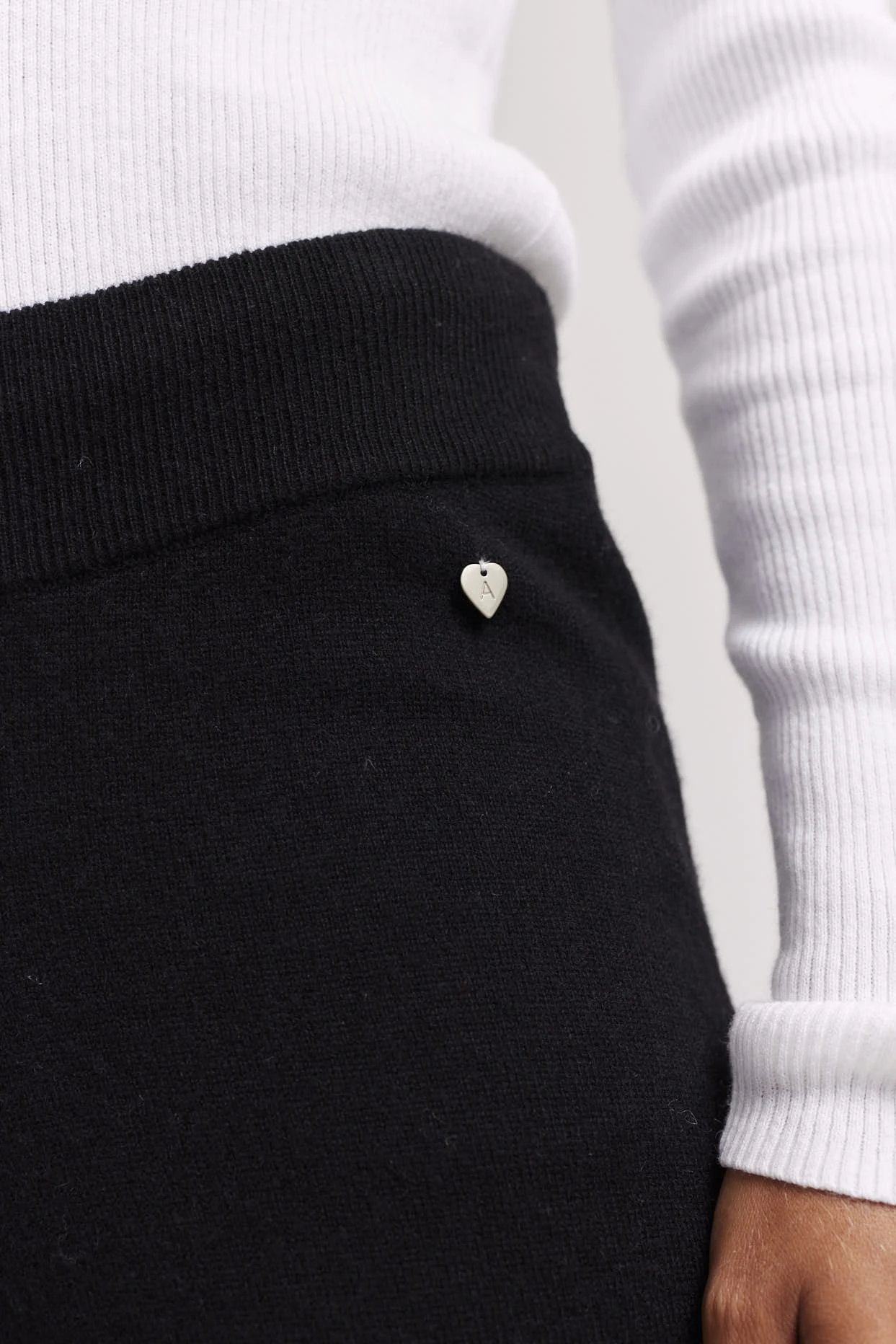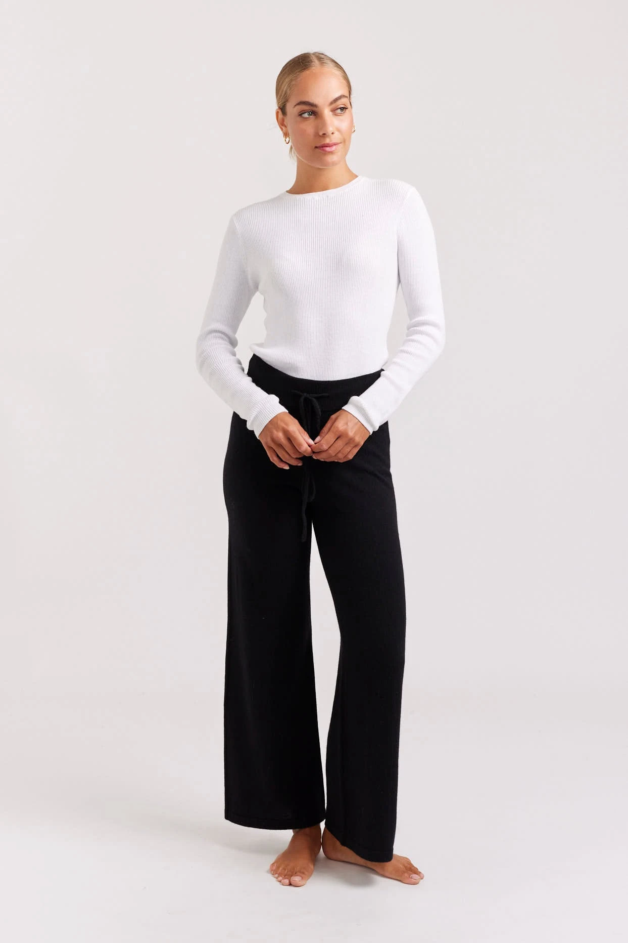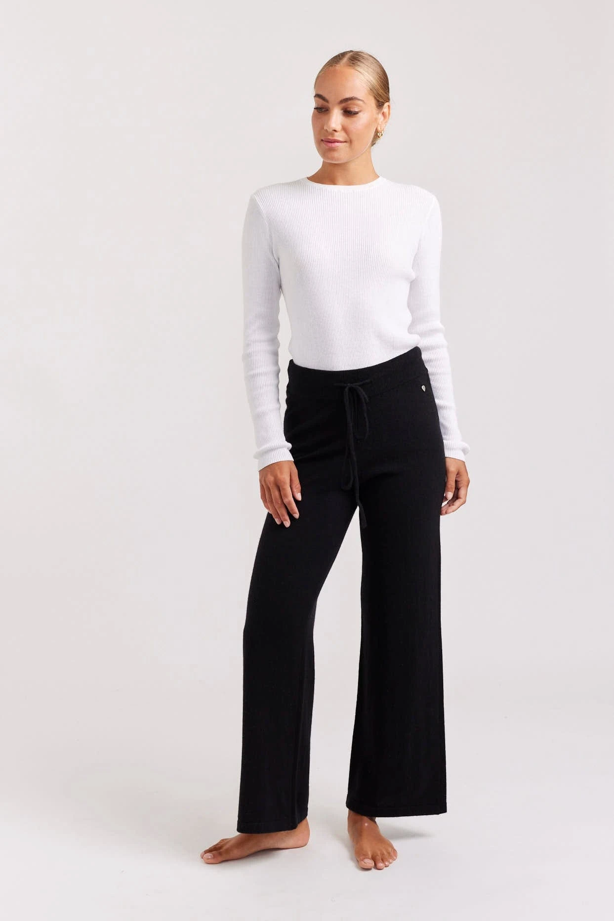 - Ribbed waistband with drawstring tie