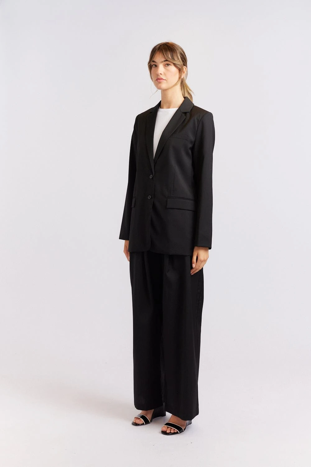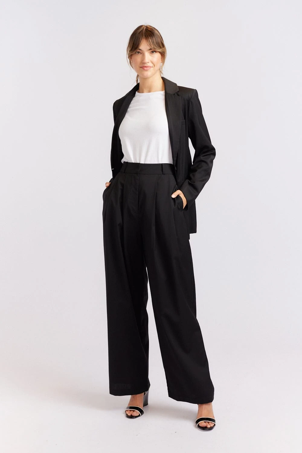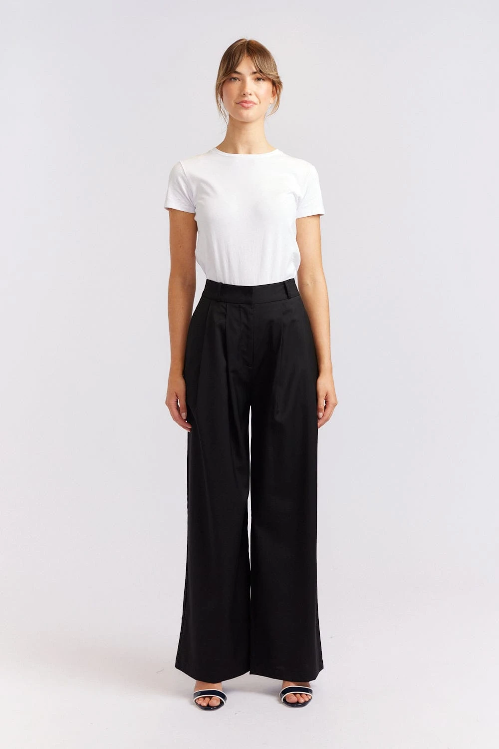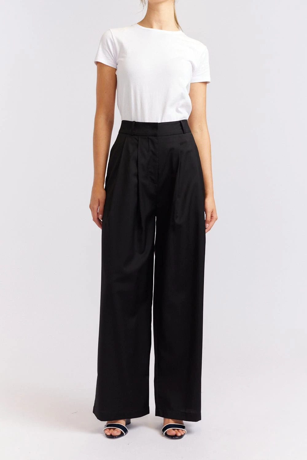 - Wide leg with pleated front detail