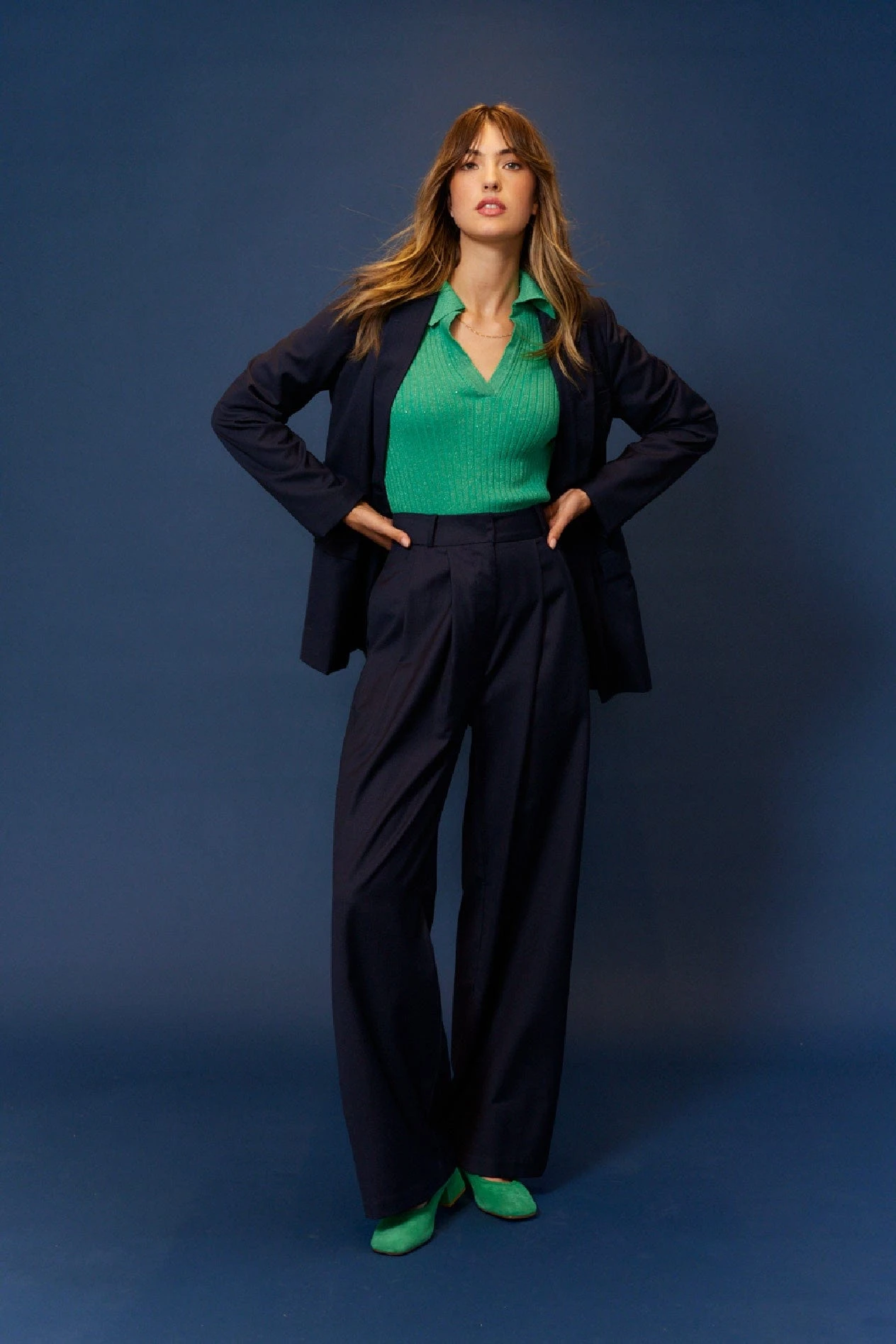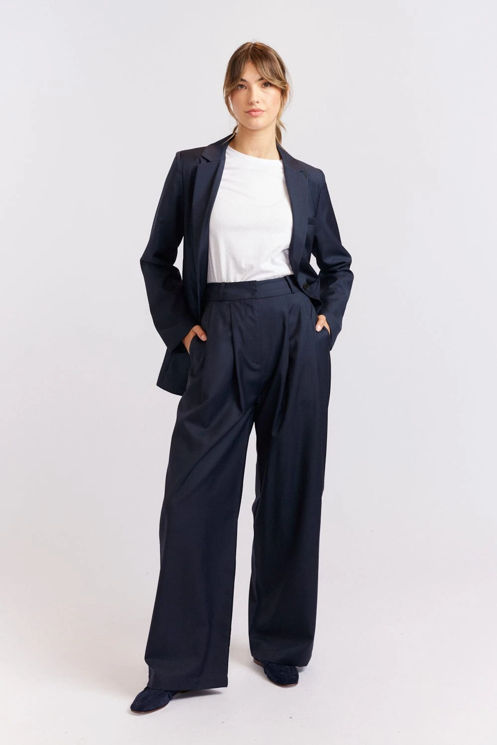 - Wide leg with pleated front detail