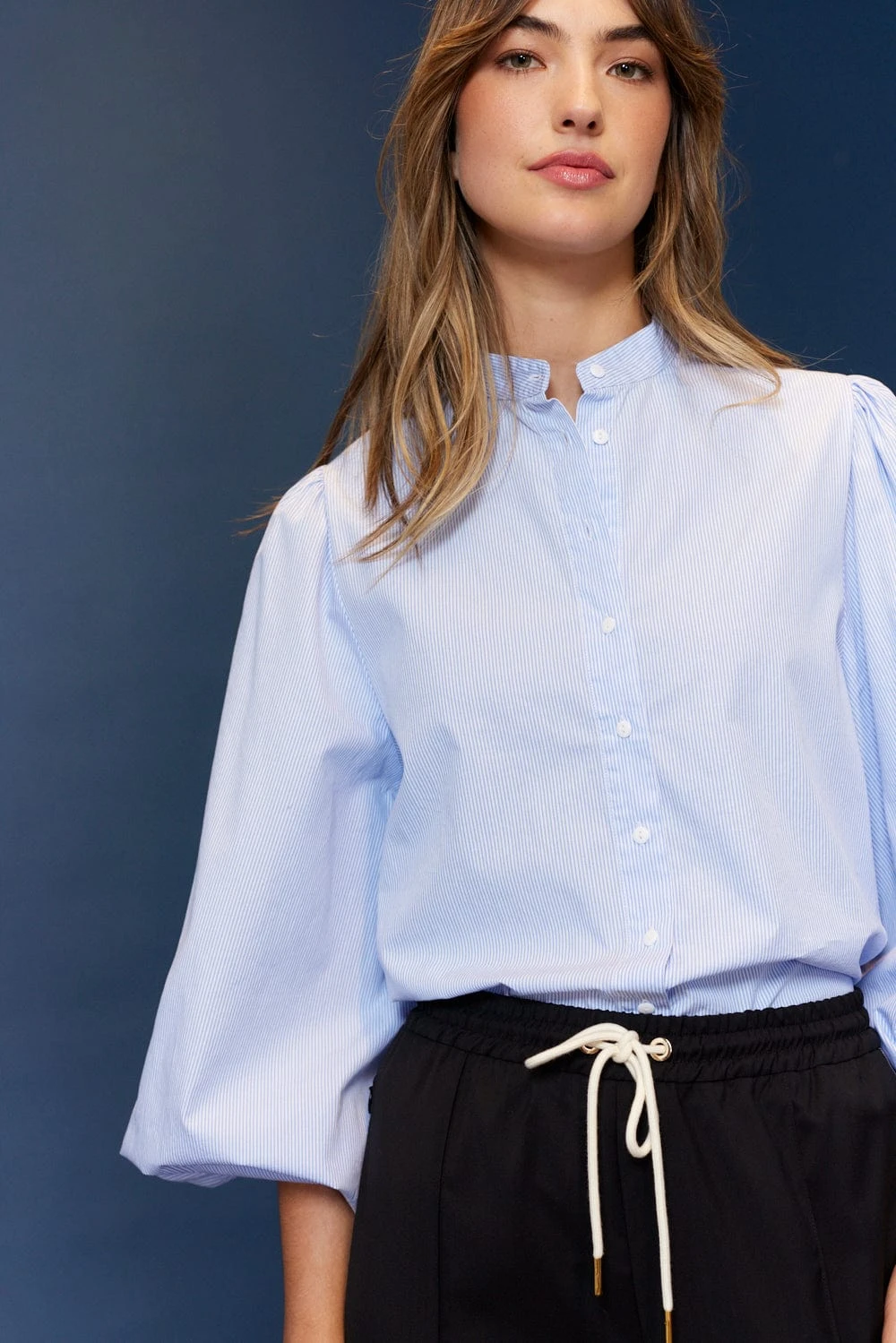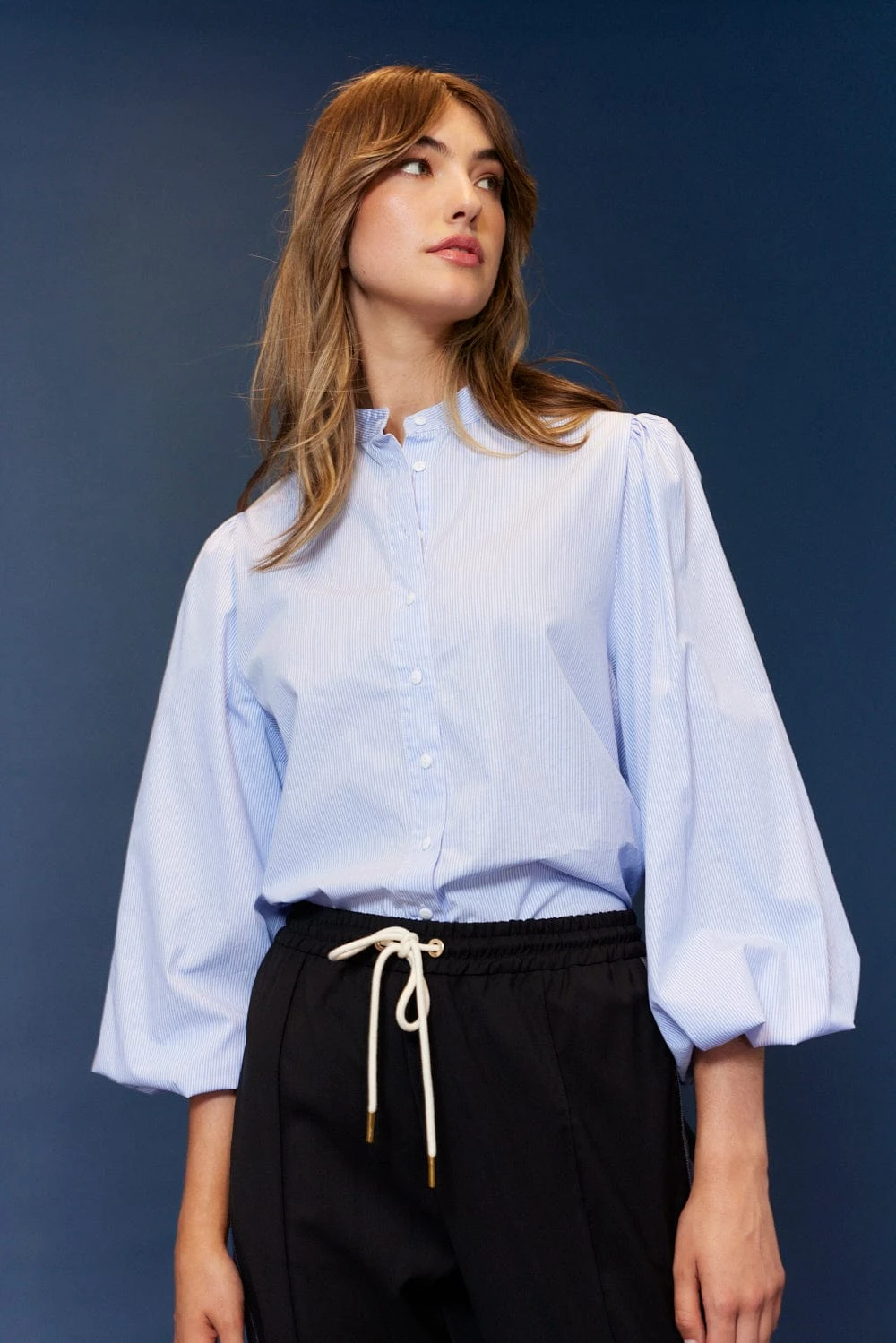 - Balloon sleeves with elastic cuffs