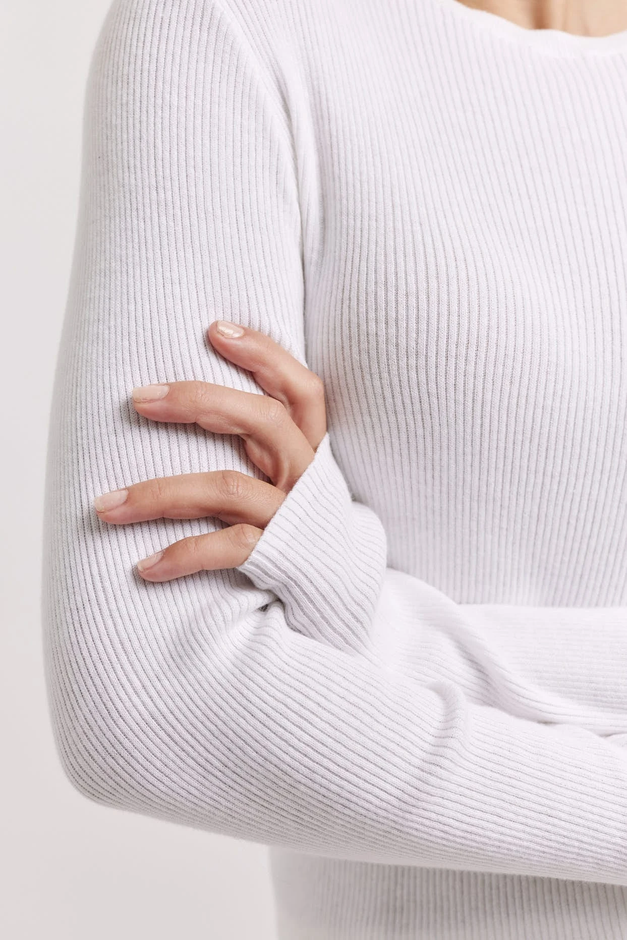 Cotton cashmere is a delicate, luxurious yarn which requires careful handling. To extend the life of the garment, please see care information here.
